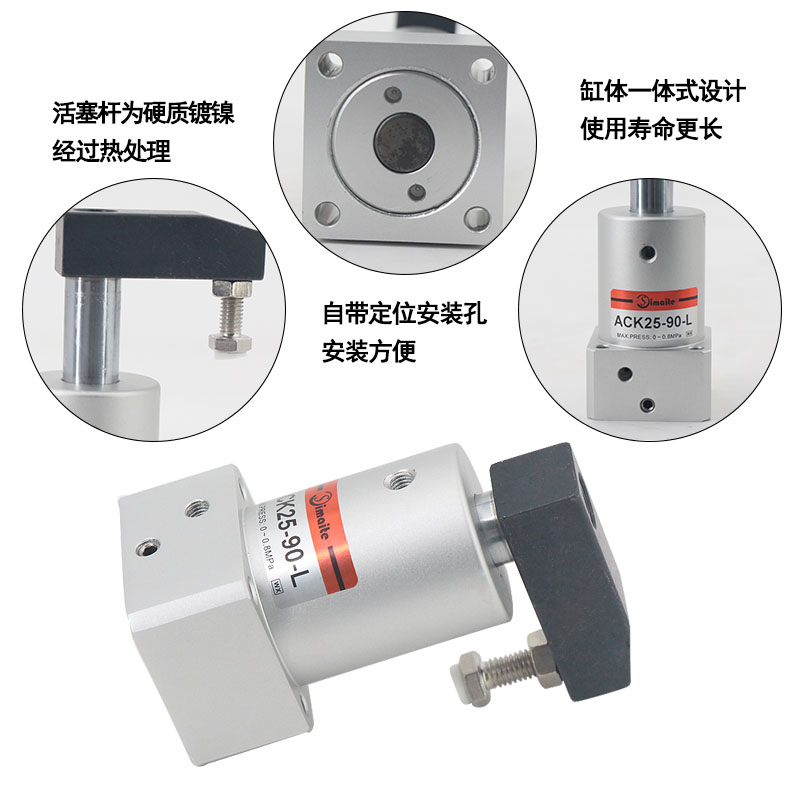 1、斯麥特生產(chǎn)的ACK系列轉(zhuǎn)角旋轉(zhuǎn)氣缸密封件材質(zhì)保證了氣缸在各種條件下使用的可靠性能;